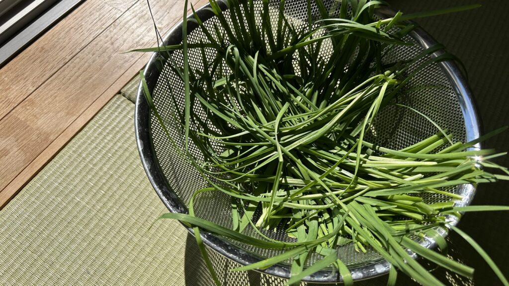 あとはニラなど。これは固い部分まで収穫してしまってちょっと料理には不向きでした…。